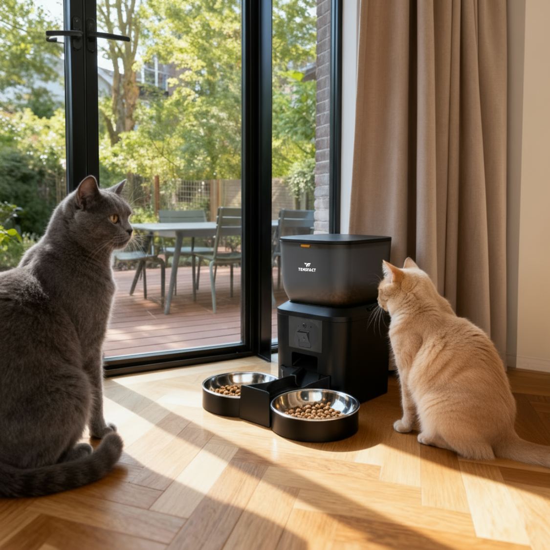 Capaciteit: 4 liter, geschikt voor droogvoer met een diameter tot 12 mm.