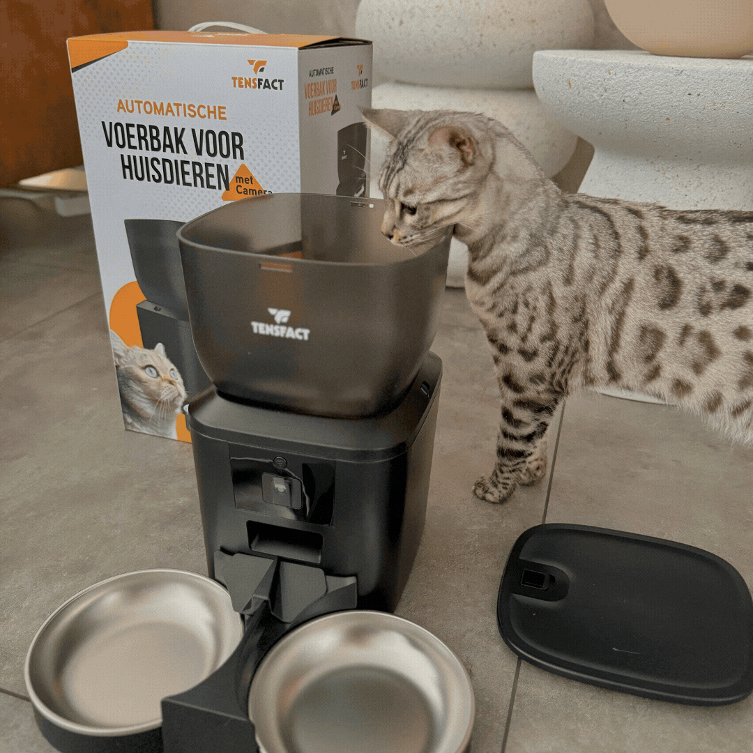 Bijzonderheden: Automatisch omkeermechanisme om vastzittend voer te voorkomen; ingebouwde luidspreker en microfoon voor communicatie met uw huisdier.